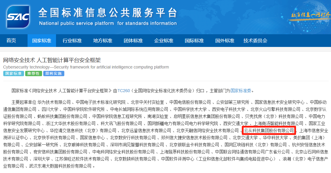 近日,國家標準GB/T 45958-2025《網絡安全技術 人工智能計算平臺安全框架》正式發(fā)布。該標準由全國網絡安全標準化技術委員會歸口管理,華為技術有限公司牽頭,云從科技作為核心起草單位之一,深度參與了標準制定工作。 這項將于2026年2月1日正式實施的國家標準,為人工智能計算平臺建立了系統(tǒng)化的安全框架,規(guī)定了安全功能、安全管理和角色安全職責,將有效應對硬件漏洞、訓練數(shù)據(jù)泄露、對抗樣本攻擊等新型安全威脅。